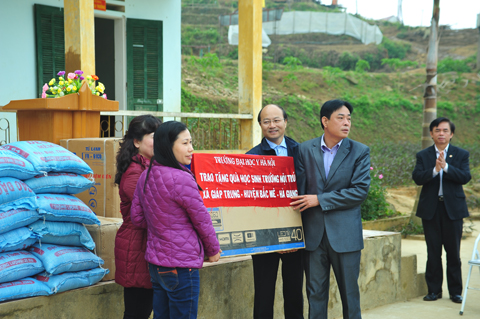 Hưởng ứng cuộc vân động “Ủng hộ học sinh trường tiểu học nội trú xã Giáp Trung, huyện Bắc Mê Hà Giang”, nơi chịu nhiều ảnh hưởng của thời tiết khắc nhiệt và địa hình hiểm trở khiến việc học hành của các em càng cơ cực, khó khăn, Vụ Châu Âu - Bộ Ngoại Giao phối hợp với Công đoàn Trường Đại học Y Hà Nội đã tổ chức chuyến đi Hà Giang từ ngày 25/1 đến ngày 27/1/2015.