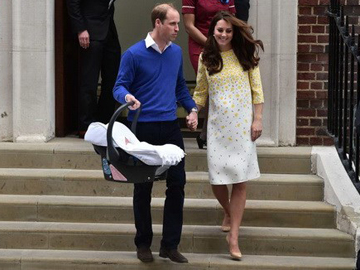 | Hoàng tử William và Công nương Catherine cùng công chúa mới sinh rời khỏi Bệnh viện St. Mary’s ở thủ đô London, Anh (Nguồn: AFP). |