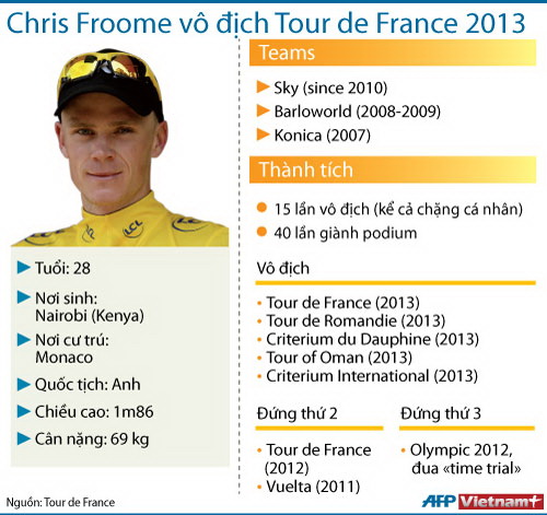 Froome năm nay 28 tuổi, sinh tại Nairobi (Kenya), đã thắng ba chặng ở giải năm nay, gồm 2 chặng leo núi và một chặng tính giờ.
