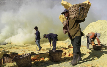 | Cảnh công nhân khai thác lưu huỳnh tại Kawah Ijen. |