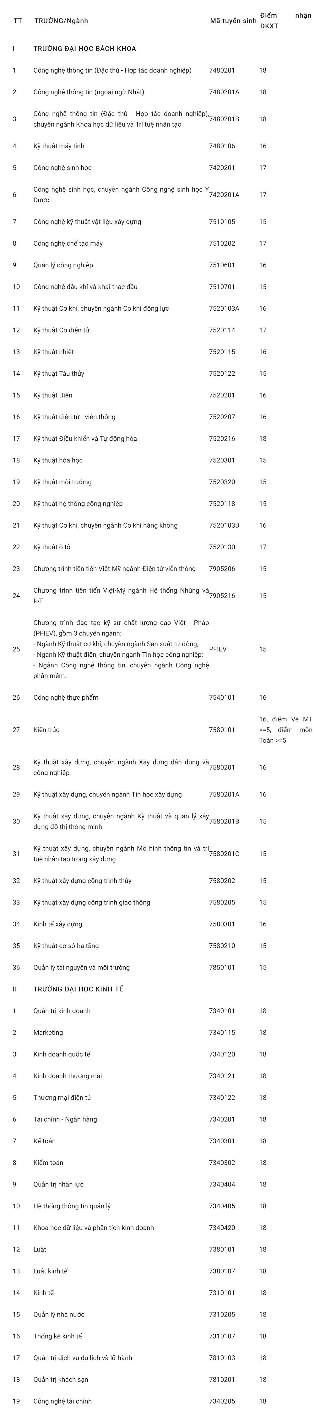 | Đại học Đà Nẵng công bố điểm sàn các trường, đơn vị trực thuộc. |