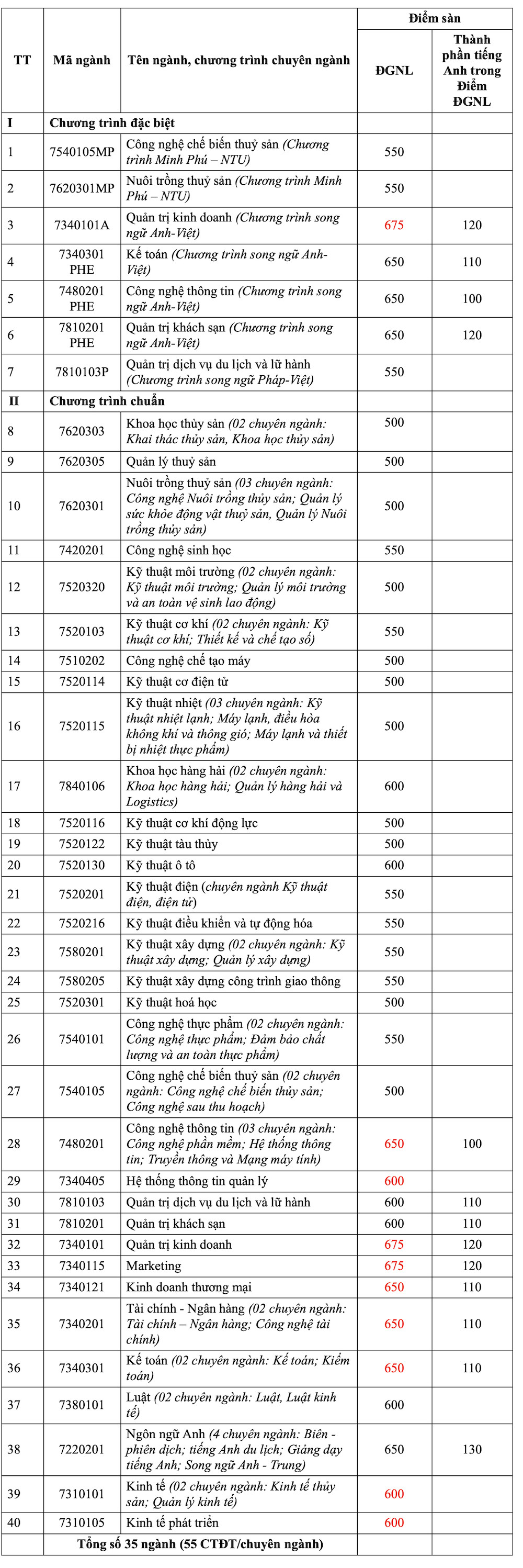 Trường ĐH Nguyễn Tất Thành nhận hồ sơ xét tuyển kết quả kỳ thi đánh giá năng lực của ĐH Quốc gia TP. Hồ Chí Minh từ 550 điểm trở lên.