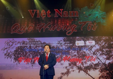 Ông Nguyễn Thanh Sơn, Thứ trưởng Ngoại giao, Chủ nhiệm Ủy ban Nhà nước về NVNONN phát biểu tại Đại nhạc hội.