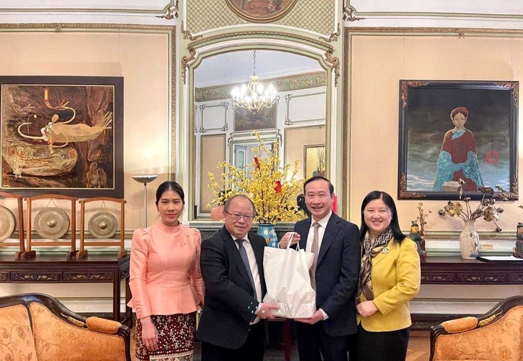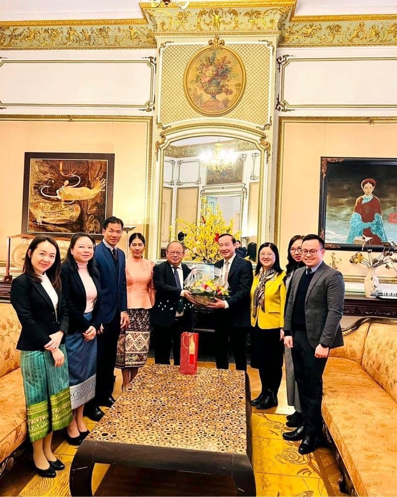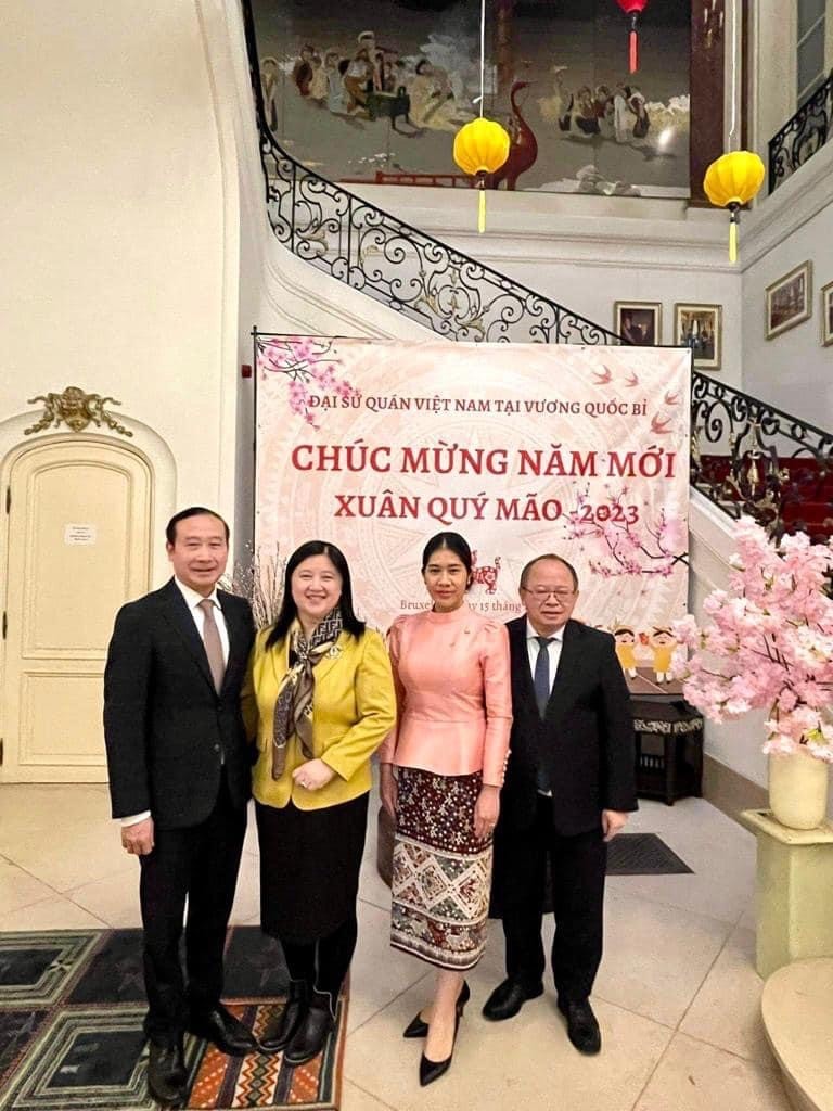 Đại sứ Phoukhong Sisoulath khẳng định coi trọng quan hệ với Việt Nam và gửi những lời chúc Tết tốt đẹp nhất đến tập thể cán bộ, nhân viên Đại sứ quán Việt Nam tại Bỉ trong năm mới Quý Mão.