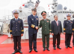 Đặc biệt, Đại tướng Phan Văn Giang và Thượng tướng Đổng Quân dự Lễ khởi hành Tuần tra liên hợp lần thứ 40, Huấn luyện liên hợp trên vùng biển Vịnh Bắc Bộ giữa Hải quân nhân dân Việt Nam và Hải quân Quân Giải phóng nhân dân Trung Quốc. (Ảnh: Tuấn Huy)