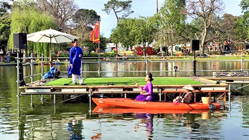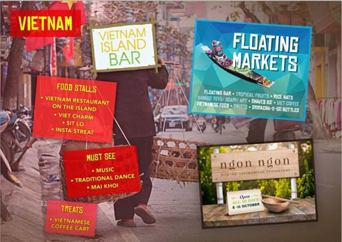 Năm nay, khu vực không gian, sân khấu của Việt Nam tại Lễ hội được đánh giá khá độc đáo với sự mô phỏng chợ nổi của miền Tây sông nước, đem đến cái nhìn khác lạ về cuộc sống thường ngày của người Việt. Sân khấu biểu diễn được dựng lên giữa hồ nước mênh mông không chỉ tạo nên quang cảnh êm đềm, thơ mộng mà còn đem những tiếng hát dân ca thêm vang xa. Khán giả vừa thưởng thức những món ăn dân dã của Việt Nam,, vừa được lắng nghe tiếng hát du dương trong không gian huyền ảo với ánh đèn khi đêm xuống.