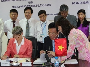 | Hai bên cùng ký kết thỏa thuận hợp tác. (Ảnh: Đại sứ quán Đức) |