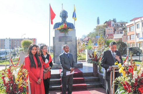 Phát biểu tại buổi lễ, thay mặt nhân dân Antananarivo, Ngài Thị trưởng Ny Hasina Andriamanjoto xúc động nhớ lại niềm vinh dự và tự hào của người dân Madagascar vào năm 2003 khi Việt Nam chọn thành phố là nơi đặt Tượng đài Bác Hồ, tấm gương sáng về tinh thần yêu nước và ý chí sắt đá trong cuộc đấu tranh giải phóng dân tộc. Thị trưởng cũng giới thiệu thân thế và sự nghiệp của Chủ tịch Hồ Chí Minh, với lời nhắn nhủ đến thế hệ trẻ về tấm gương đạo đức cao đẹp của Người.