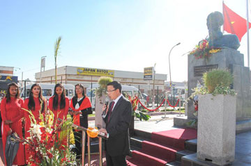 | Đại sứ Việt Nam Nguyễn Văn Trung phát biểu tại buổi lễ khánh thành tôn tạo di tích Quảng trường Hồ Chí Minh và Tượng đài Bác Hồ. |