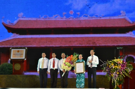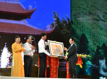 | Phó Thủ tướng, Bộ trưởng Phạm Bình Minh trao Bằng xếp hạng di tích Quốc gia đặc biệt đối với Khu di tích lịch sử Nhà trần tại huyện Đông Triều cho ông Nguyễn Văn Đọc, Chủ tịch UBND tỉnh và Lãnh đạo huyện. Ảnh: Tuấn Anh/TG&VN |