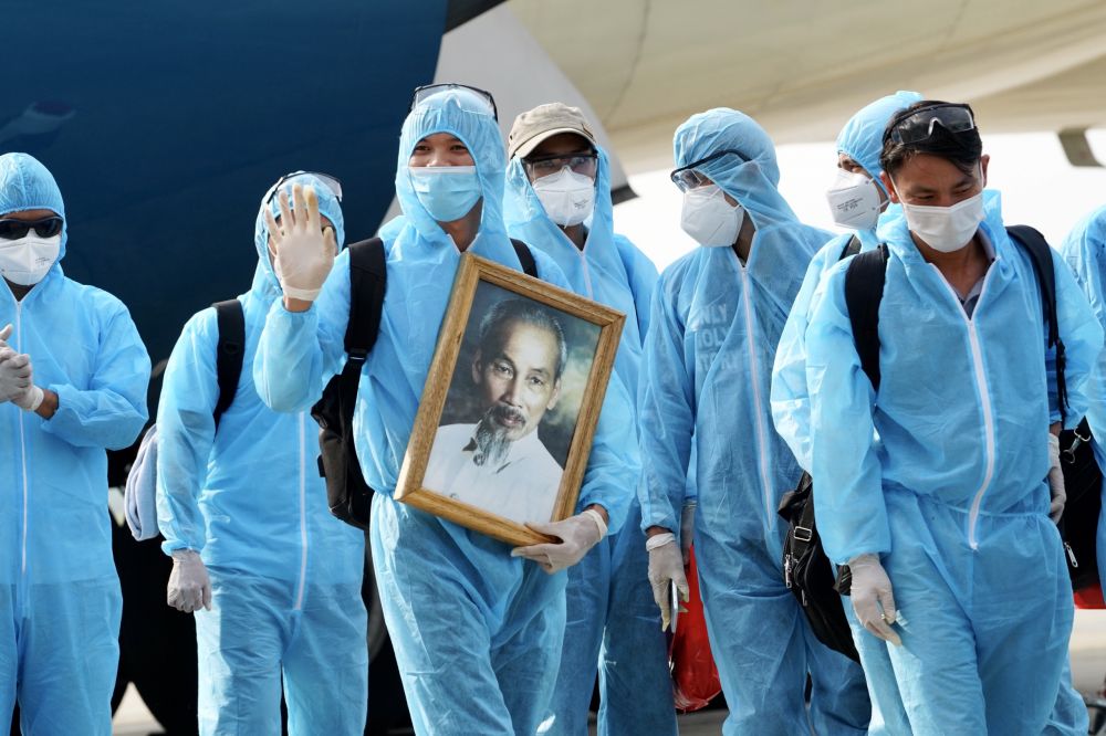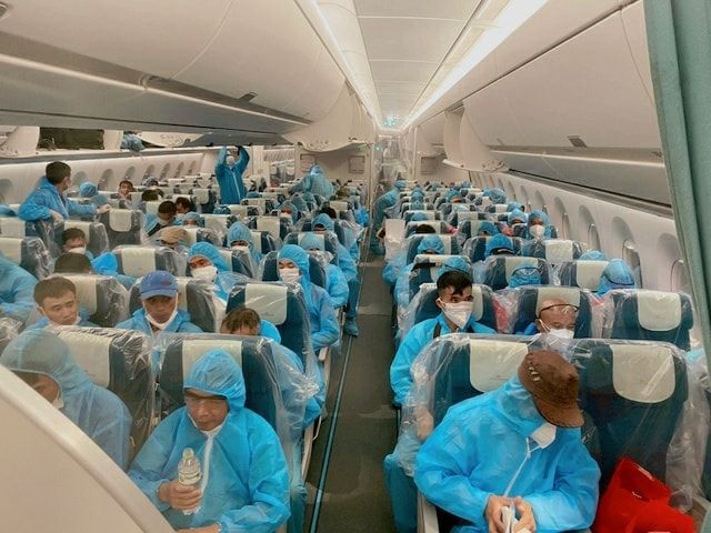 | 7h30 ngày 28/7, chuyến bay số hiệu VN 05 bằng máy bay Airbus A350 của Vietnam Airlines khởi hành từ sân bay Nội Bài hướng tới sân bay quốc tế Bata của Guinea Xích Đạo đón 219 công dân, trong đó có 129 người dương tính với Covid-19, về nước. |