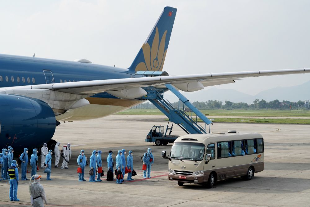 | Từ đây, các công dân và tổ bay sẽ được chở về địa điểm cách ly. |