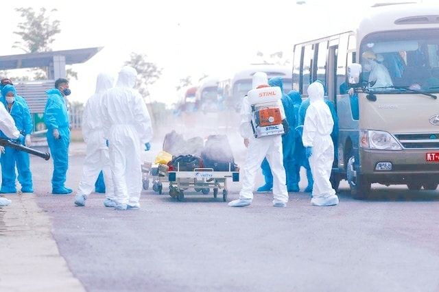 | Đoàn xe bắt đầu di chuyển về địa điểm cách ly. |