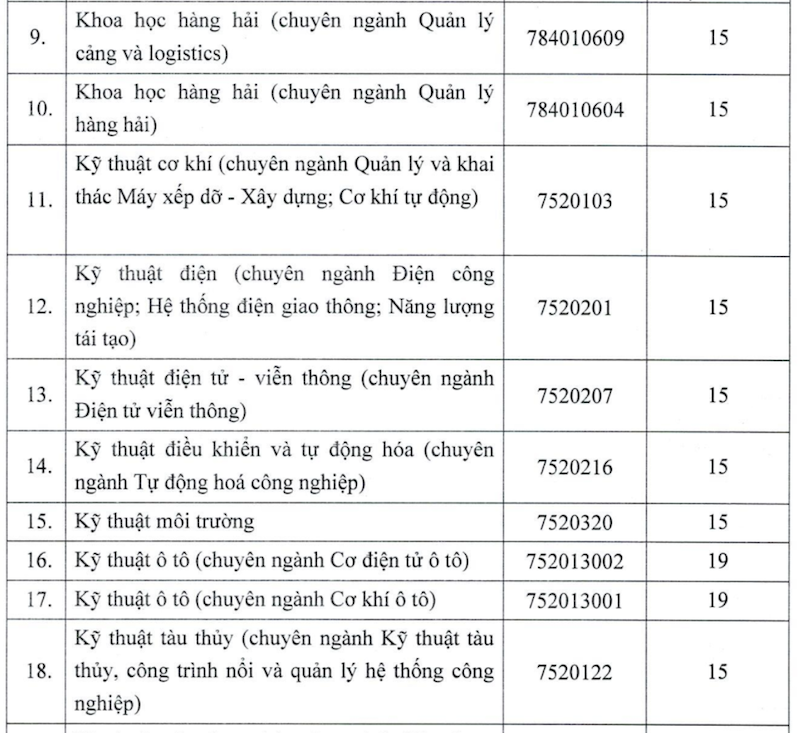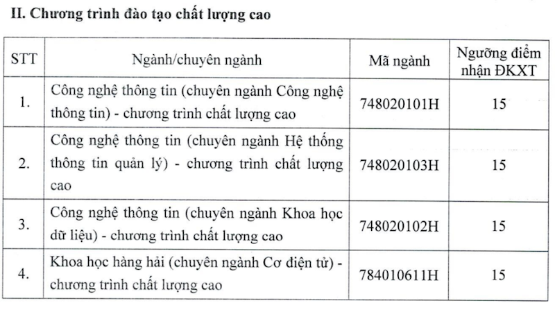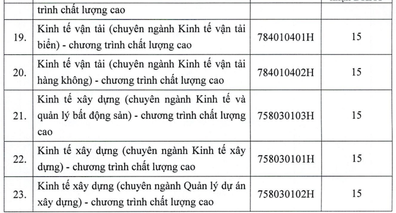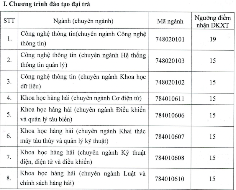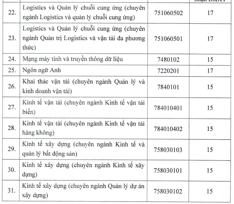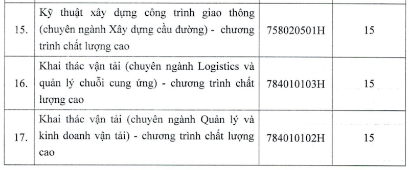 | Điểm sàn Trường ĐH Giao thông Vận tải TP. Hồ Chí Minh từ 15-19. (Nguồn: TP) |