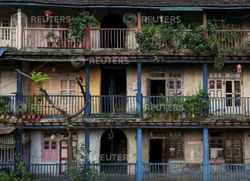 Cửa sổ và cửa chính của các căn hộ tại một tòa nhà dân cư cũ được chụp ở trung tâm Mumbai. Chi phí để mua một căn hộ chung cư gần trung tâm thành phố Mumbai như vậy khoảng từ 200–1.800 USD/feet vuông.