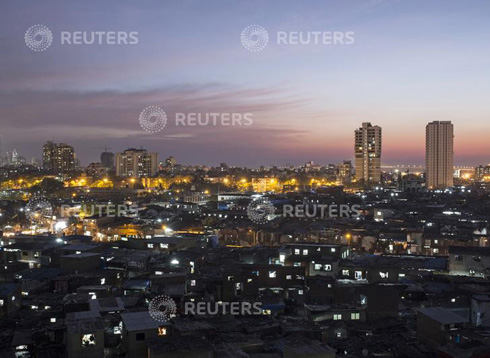 Những toà cao ốc mọc ngay cạnh những ngôi nhà tồi tàn ở Dharavi, một trong những khu ổ chuột lớn nhất châu Á, tại Mumbai.
