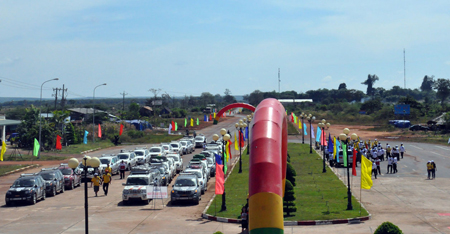 Lễ tiễn đoàn xe ô tô ASEAN - Ấn Độ từ Bình Phước, Việt Nam qua Campuchia đã diễn ra sau đó.