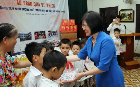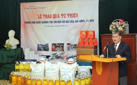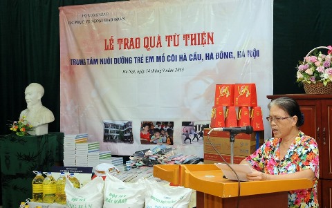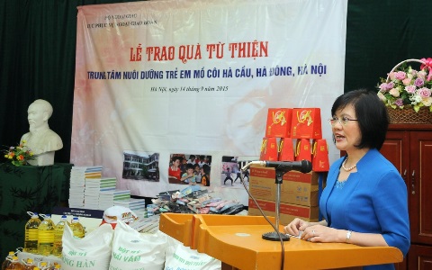 Phát biểu tại buổi lễ trao tặng quà, bà Trần Thục Ninh, Giám đốc Trung tâm đã bày tỏ sự xúc động trước tấm lòng nhân ái, sự yêu thương của các cán bộ ngoại giao, các Đại sứ và cá nhân Phu nhân Nguyễn Nguyệt Nga.