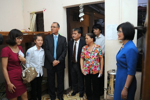 | Các Đại sứ thăm nơi ăn, ở của các cháu. |