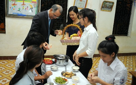 Sau lễ trao tặng quà, Đại sứ Nguyễn Nguyệt Nga, các Đại sứ và cán bộ ngành Ngoại giao đã đi thăm nơi ăn, ở của các con tại Trung tâm.