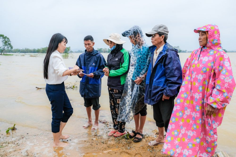 Doanh nhân Phạm Bích Thủy chia sẻ “Tôi đã không kìm được nước mắt mỗi khi đọc tin tức, xem hình ảnh, video về miền Trung trong những ngày đau thương này. Tôi theo dõi tình hình bão lũ miền Trung mỗi ngày, thầm nguyện cầu thiên tai sớm qua đi để người dân bớt khổ đau. Ngồi nhà theo dõi tin tức mà tôi nóng lòng quá nên tôi đã quyết định sẽ vào Huế tham gia cứu trợ người dân vùng lũ”.