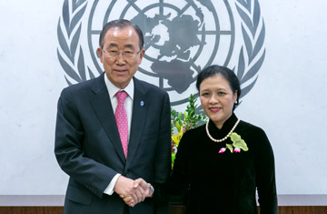| Tổng Thư ký Liên hợp quốc Ban Ki-moon và Đại sứ Nguyễn Phương Nga, Trưởng Phái đoàn thường trực Việt Nam tại Liên hợp quốc, New York (Mỹ). |