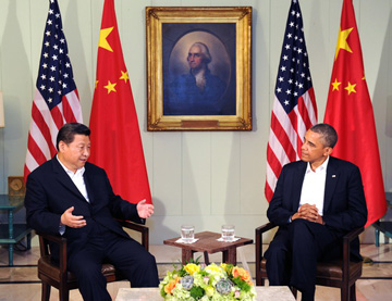 | Cuộc hội đàm giữa Tổng thống Mỹ Barack Obama (phải) và Tổng Bí thư, Chủ tịch Trung Quốc Tập Cận Bình, ngày 8/6, tại Rancho Mirage, bang California. |