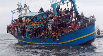 | Những người châu Phi di cư trái phép liều mình vượt biển trên những con tàu ọp ẹp, quá tải (Nguồn: Sputnik). |
