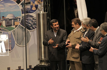 | Tổng thống Iran Mahmoud Ahmadinejad (trái) và Trưởng đoàn đàm phán hạt nhân của Iran Saeed Jalili (thứ 3 từ trái) tại lễ kỷ niệm Ngày hạt nhân quốc gi |