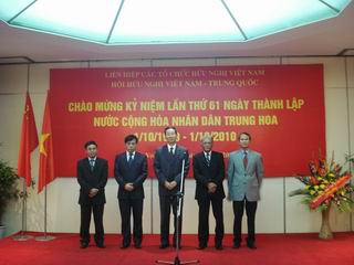 Ông Đoàn Mạnh Giao – Chủ tịch Hội hữu nghị Việt – Trung cũng chúc mừng những thành tựu to lớn mà nhân dân Trung Quốc đã giành được trong công cuộc cải cách và phát triển. Nhân Năm hữu nghị Việt – Trung, ông khẳng định những hoạt động mà LHCTCHNVN và Hội hữu nghị Việt – Trung đã và sẽ tổ chức như Cuộc thi tìm hiểu quan hệ hữu nghị Việt – Trung, Liên hoan hữu nghị nhân dân Việt – Trung, các chuyến thăm và giao lưu của các đoàn cựu chiến binh, chuyên gia Trung Quốc … góp phần tích cực vào việc tăng cường hiểu biết, sự tin cậy và tình hữu nghị giữa hai nước.