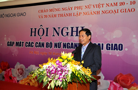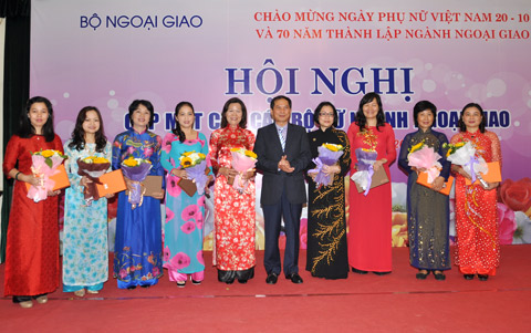 Phụ nữ trong ngành đối ngoại ngày nay đang thể hiện được cả tài, đức và tâm với nghề. Sự vững vàng trong chuyên môn, sự năng động, khéo léo của các chị được các cán bộ nam giới trong và ngoài ngành cũng như các bạn bè quốc tế thừa nhận. Riêng 6 tháng đầu năm 2015 đã có 18 cán bộ nữ được bổ nhiệm từ cấp Phòng trở lên và có 2 cán bộ nữ được bổ nhiệm là Trưởng cơ quan đại diện Việt Nam ở nước ngoài. Có thể nói, trên tất cả các lĩnh vực công tác của Bộ Ngoại giao đều có sự đóng góp quan trọng của cán bộ nữ, Thứ trưởng khẳng định.