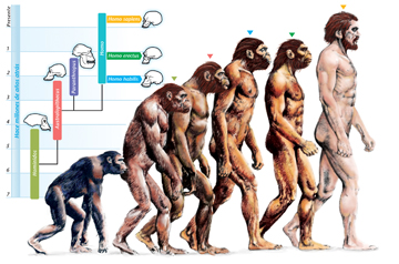 Đi lại bằng hai chân là một trong những điểm đặc trưng nhất của loài người. Đã có nhiều giả thuyết được đưa ra lý giải về quá trình tiến hóa này. Nhìn chung, các nhà khoa học đều thống nhất rằng, loài người đã tự tiến hóa đi bằng hai chân là để thích nghi với những vùng địa hình khác nhau. Việc tìm kiếm thức ăn đã buộc con người phải di chuyển từ những cánh rừng ra vùng đồng cỏ. Do thiếu cây cối để leo trèo nên việc đứng bằng hai chân là cần thiết nhằm nâng cao tầm nhìn, xác định con mồi và quan sát những mối đe dọa xung quanh.