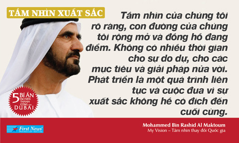 Trong cuốn sách mới được công ty First News phát hành, Quốc vương Dubai đã tóm tắt và chỉ rõ con đường tiến đến sự phát triển thần kỳ của Dubai. Tác giả đã khẳng định tầm nhìn là yếu tố quyết định và tiên quyết để xây dựng một quốc gia. “Tầm nhìn là con đường để phát triển thực sự, nó cũng là vấn đề của lòng can đảm và chinh phục những điều không thể. Đó là lòng tin vào khả năng đạt được mục tiêu, có mục tiêu rõ ràng và thực hiện chúng với sự quyết tâm, hiệu quả và tốc độ, không bao giờ dừng lại cho đến khi con cái chúng ta nhìn thấy quốc gia chúng ta cạnh tranh với các trung tâm kinh tế thành công nhất trên thế giới”.
