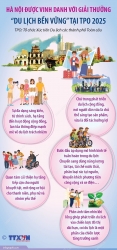 | Hà Nội được vinh danh với giải thưởng ‘Du lịch bền vững’ tại TPO 2025 Hà Nội đã nhận giải thưởng “Du lịch bền vững” - một trong những hạng mục quan trọng nhất của TPO Best Awards 2025. |