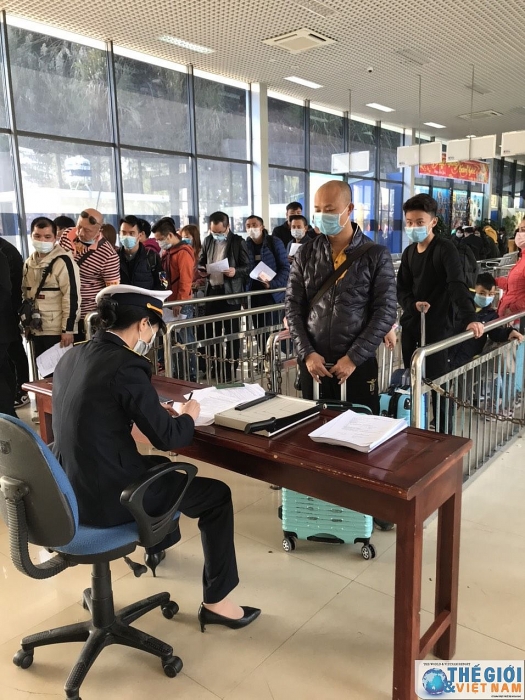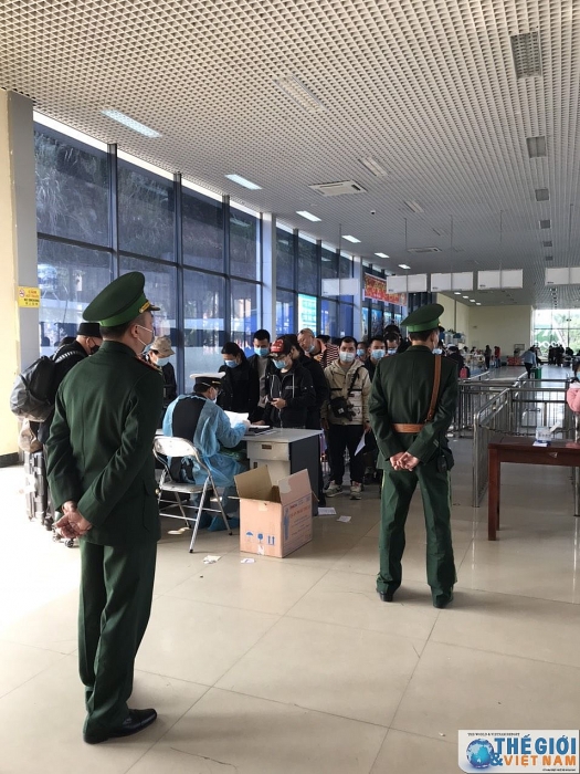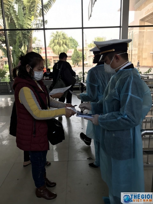 | Tại cửa khẩu Móng Cái cán bộ Kiểm dịch Y tế Quốc tế Quảng Ninh tăng cường giám sát khách nhập cảnh. |