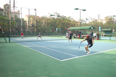 Ở sân tenis đối diện, chúng tôi thấy cặp đôi Nguyễn Quốc Dũng, Vụ trưởng Vụ Tổ chức Cán bộ và Nguyễn Tùng Lâm, Phó Tổng Biên tập báo Thế giới & Việt Nam (Bộ Ngoại giao) cũng đang thi đấu kiên cường và dành chiến thắng 5-4 trước cặp đôi Lê Minh Tuấn, Phó Vụ trưởng Vụ Trung ương 1A và Nguyễn Hải Đăng, Kiểm sát viên chính Vụ Trung ương 1A.
