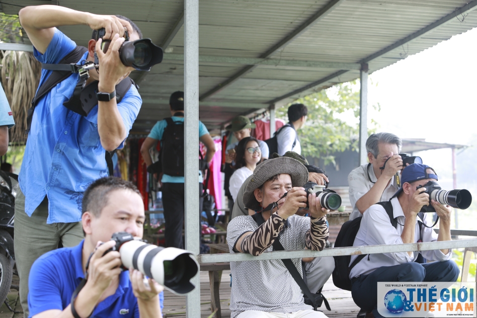 | Một CLB nhiếp ảnh đang sáng tác ở đầm sen. (Ảnh: Trung Hiếu) |