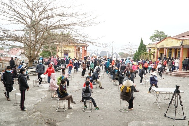 | Chiều 28/1, hàng trăm người dân trong xã Hưng Đạo (TP Chí Linh, Hải Dương) có mặt tại UBND xã để lấy mẫu xét nghiệm Covid-19. (Nguồn: Dân trí) |