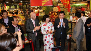 | Thứ trưởng Hồ Thị Kim Thoa, Đại sứ Dương Chí Dũng và Tổng giám đốc Big C Việt Nam L. Zécri khai trương Tuần hàng Việt Nam. |