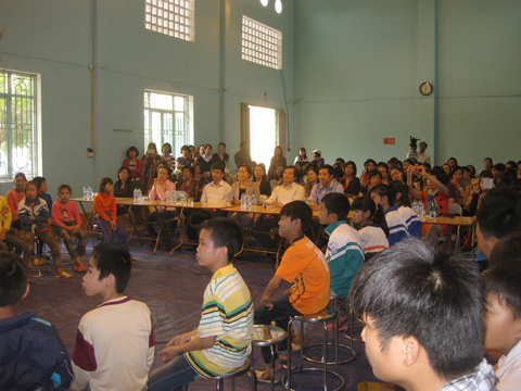 Chị Lê Thị Hiền, một giáo viên trong trung tâm cho biết công việc giảng dạy, đào tạo các trẻ em ở đây rất khó khăn. “Chúng tôi vất vả lắm bởi các cháu không bình thường, nuôi dạy trẻ em bình thường đã khó, nuôi dạy những trẻ em bất bình thường thì lại càng khó hơn. Bởi không phải một dạng tật mà là nhiều dạng tật khác nhau nên mỗi cháu một tính, rất khó quản lý. Các cháu sinh hoạt chủ yếu ở trung tâm, học tập, vui chơi theo lớp, nếu các cháu học buổi sáng thì buổi chiều học phục hồi chức năng còn các cháu lớn sẽ học nghề. Chúng tôi nhận nuôi dạy các cháu từ 6 tuổi và khi tới 16 tuổi thì các cháu sẽ trở về hòa nhập với gia đình, xã hội. Tôi đã làm ở đây 12 năm rồi, quả thực làm nghề này phải biết hy sinh thì mới làm lâu bền được!”, chị Hiền chia sẻ. Chị cho biết hàng năm có nhiều đoàn tình nguyện đến đây giúp đỡ trung tâm và chăm sóc các cháu, hiện nay cũng có một số tình nguyện viên người Đức nhưng chưa bao giờ có đoàn cán bộ đông như đoàn của Bộ Ngoại giao, điều này khiến chị và đồng nghiệp rất cảm động.