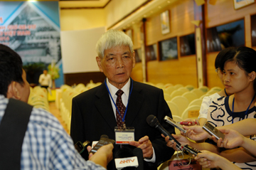 | Ông Trần Việt Phương trả lời phóng viên tại Lễ kỷ niệm. |