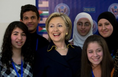 Bà Clinton gặp gỡ các sinh viên ở câu lạc bộ tiếng Anh ở Palestin