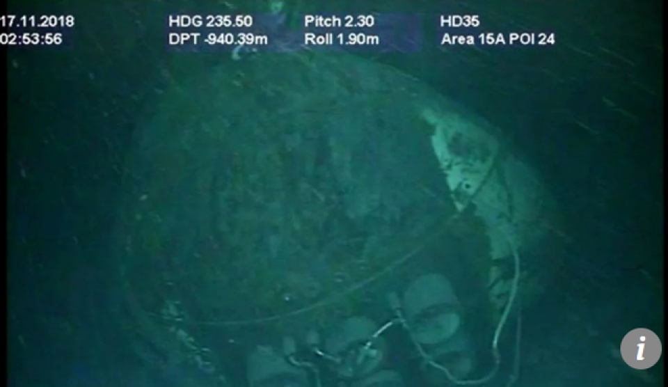 Quân đội Argentina ngày 17/11 thông báo đã tìm thấy xác tàu ngầm ARA San Juan nhờ sự hỗ trợ của công ty tìm kiếm đại dương Mỹ Ocean Infinity. Bức ảnh được công bố cho thấy, xác tàu ngầm ARA San Juan được phát hiện ban đầu từ một vật thể dài khoảng 60m nằm ở độ sâu 800m so với mặt biển ở Đại Tây Dương.