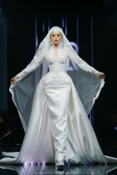 Hồi đầu tháng, người đẹp trình diễn trong show thời trang của nhà thiết kế Linh San. Đây cũng là sự kiện cuối cô tham gia trước khi làm lễ ăn hỏi với chồng đại gia vào ngày mai (16/10).