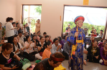 | Thanh Đồng Đoan Trang lên đồng tại miếu Thiên Hậu tại Đồng Nai (Ảnh: Nguyễn Văn Kự) |