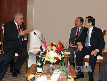 | Chủ tịch nước Trương Tấn Sang hội kiến với Thủ tướng Ai Cập Ibrahim Mahlab. Ảnh: Nguyễn Khang – TTXVN |