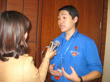 | Anh Đặng Tất Dũng, Chủ tịch Hội SVVN tại Leeds (Vương quốc Anh) trả lời phỏng vấn. |