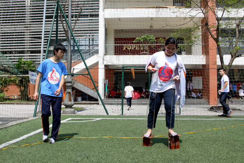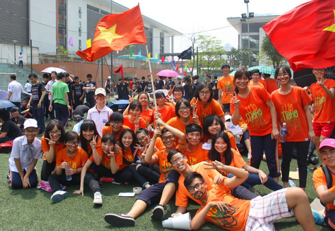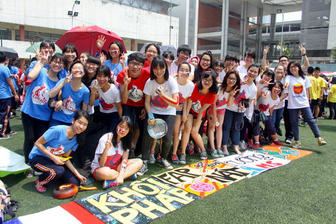 Sự kiện này cũng là dịp để các bạn học sinh giới thiệu những nét độc đáo của khối mình thông qua những lá cờ, banner và các stickers thú vị được dán trên mặt.