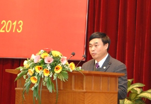 | Đồng chí Hồ Xuân Sơn, Bí thư Đảng bộ, Thứ trưởng Bộ Ngoại giao phát biểu tại Hội nghị. |