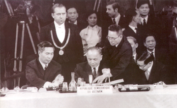 | Bộ trưởng Bộ Ngoại giao Nguyễn Duy Trinh ký Định ước của Hội nghị quốc tế về Việt Nam tại Paris, ngày 2/3/1973. |